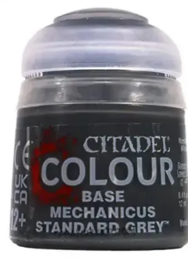 Mechanicus Standard Grey is a Citadel Base paint. Citadel Base paints are high quality acrylic paints specially formulated for basecoating your Citadel miniatures quickly and easily. They are designed to give a smooth matte finish over black or white undercoats with a single layer. This pot contains 12ml of Mechanicus Standard Grey, one of 34 Base paints in the Citadel Paint range. As with all of our paints, it is a non-toxic, water-based acrylic paint designed for use on plastic, metal, and resin Citadel miniatures.