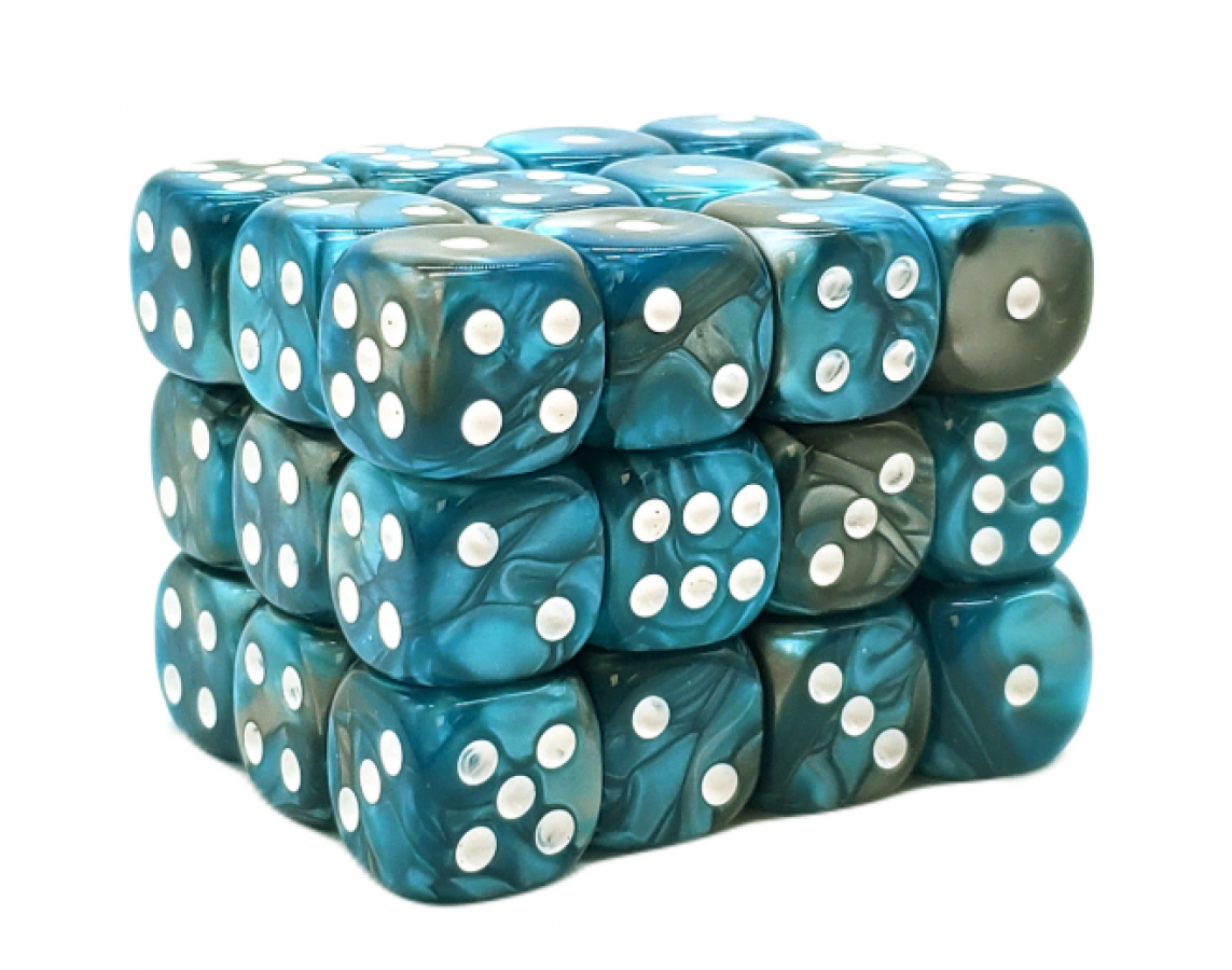 12mm D6 Dice Block – Teal/Silver (36ct)