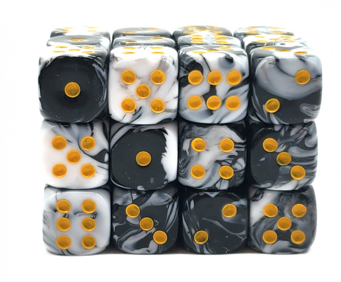 12mm D6 Dice Block – White/Black (36ct)