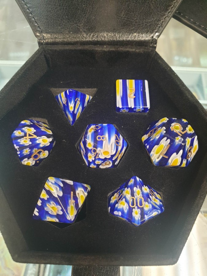 Blue Flower Glass RPG Dice