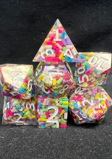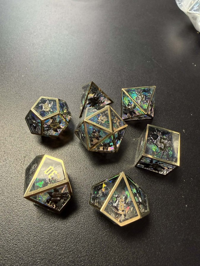 Caged Resin Gold Frame Pegasus RPG Dice Set