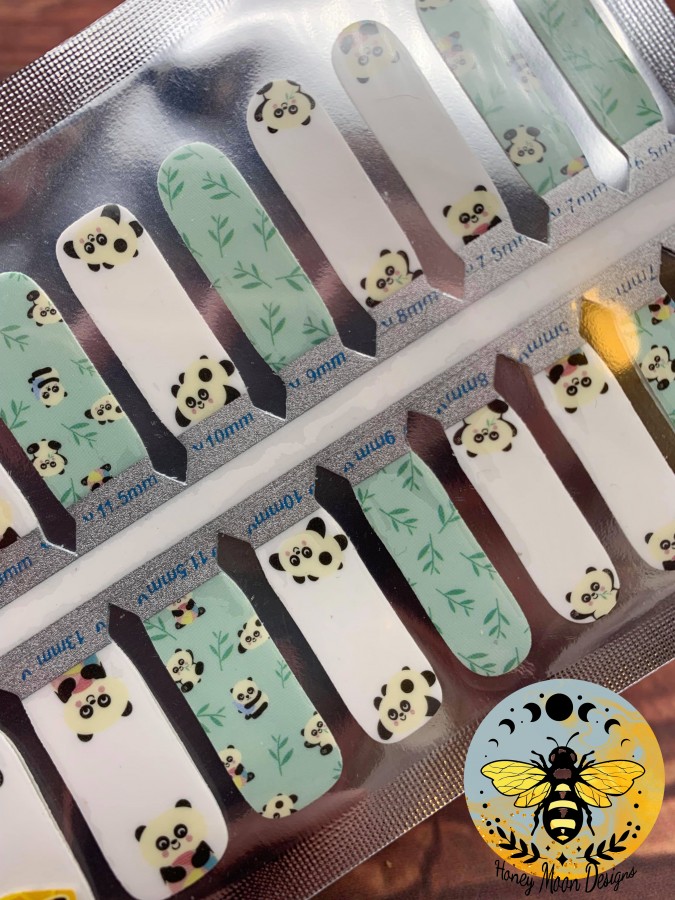 Nail Strips from Honey Moon Designs! These strips don’t need a UV light, simply stick them on to apply and cover with a clear coat! Detailed instructions available in shop, and will ship out with each order.
