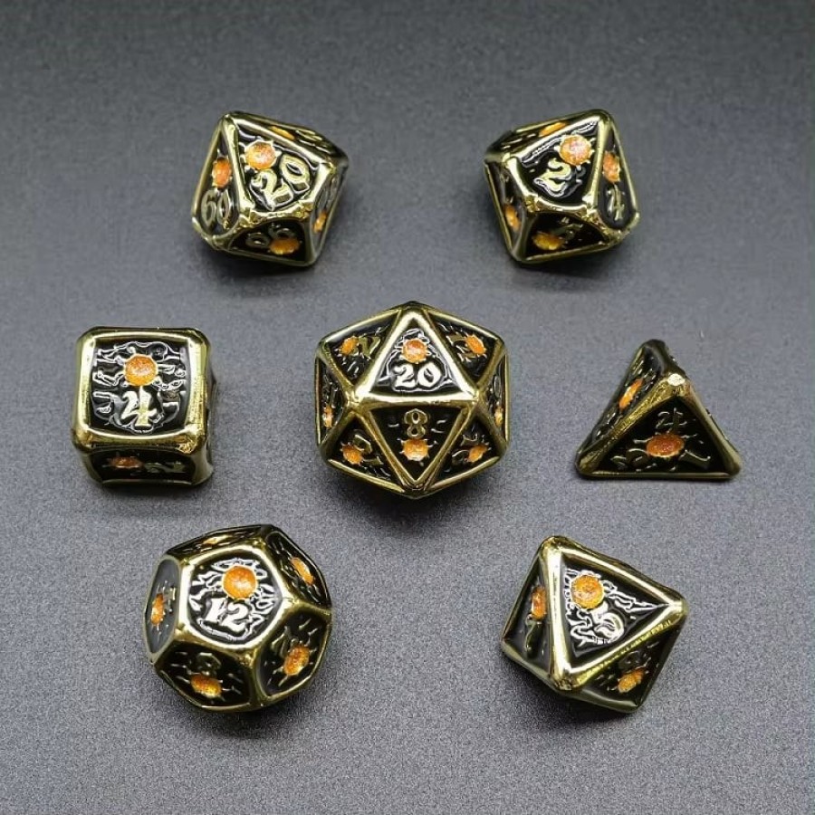 Metal Black & Gold w/ Orange Glitter RPG Dice Set