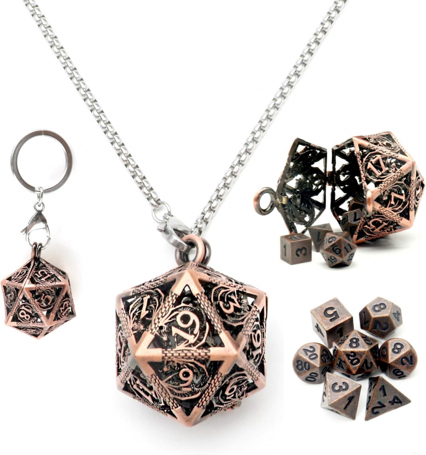 Mini Dice Set with Hollow D20 Necklace