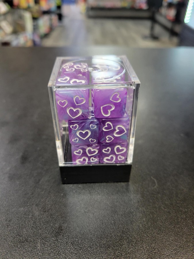 Purple and Blue Heart D6 Dice Cube