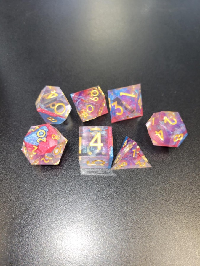 Sharp Edged Pink/Blue Prismatic RPG Dice Set
