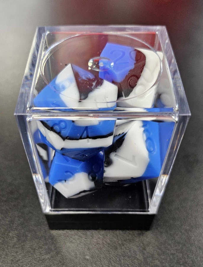 Silicone Rubber RPG Dice – Blue & White & Black