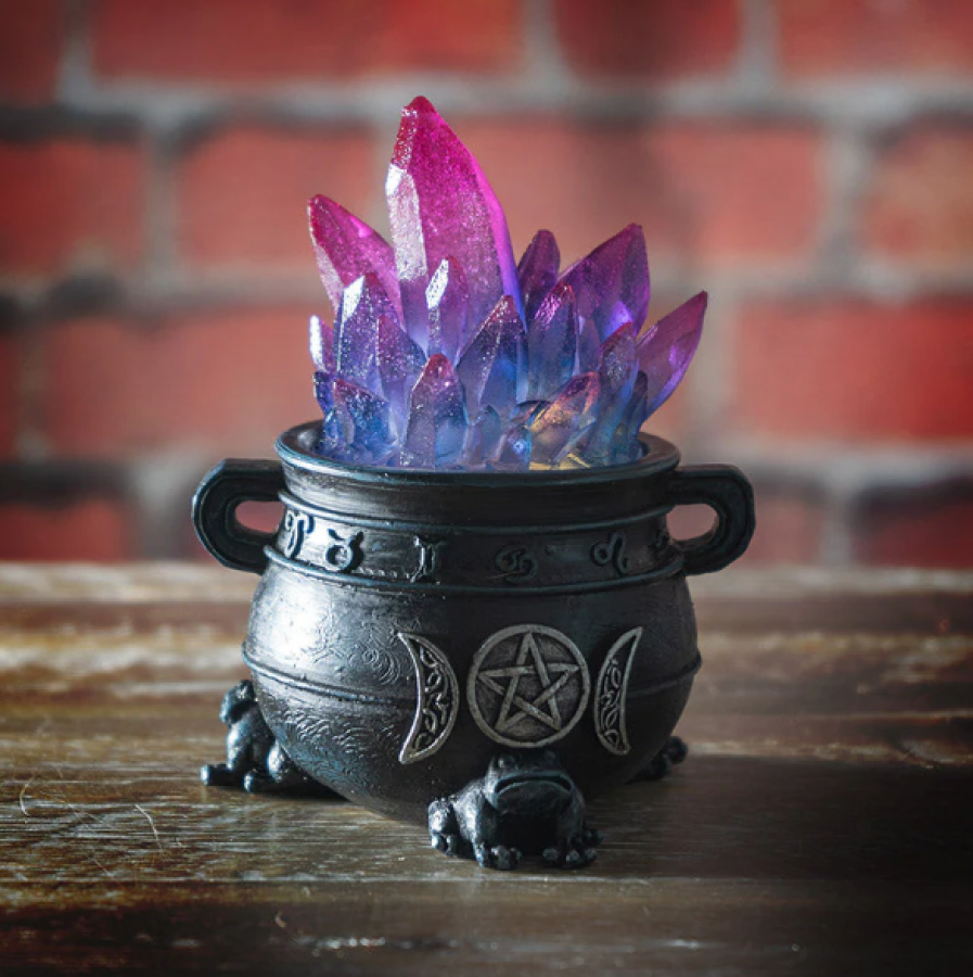 Triple Moon Cauldron W/LED Crystal C/24