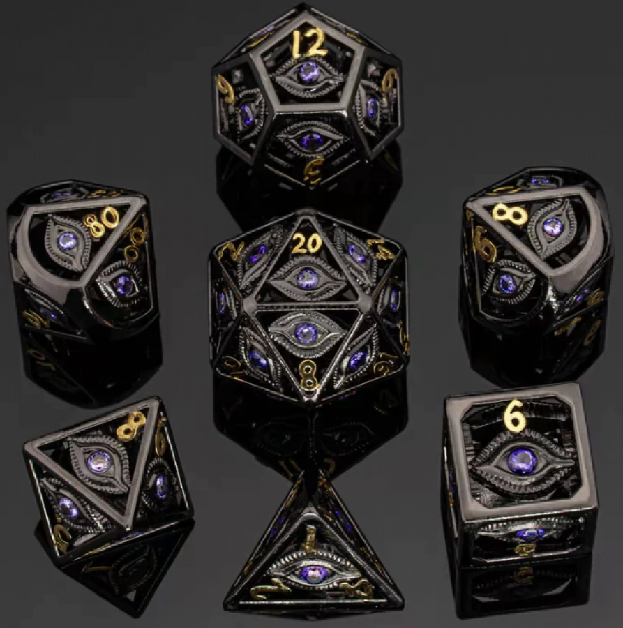 Dragon's Eye Hollow Metal Dice Set - Purple Gems